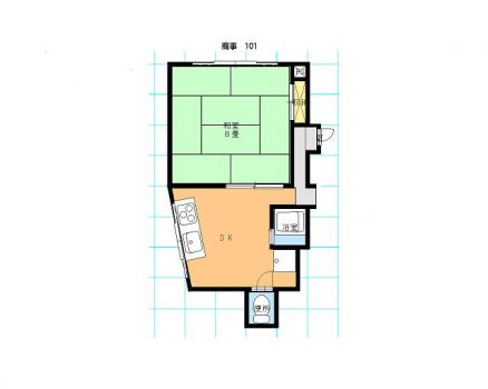 8 tatami mat livingroom/bedroom, 4 tatami mat in size floored dining kitchen area.